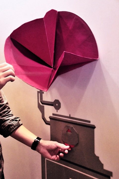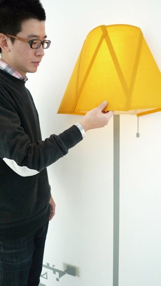 以古老的東方摺紙技藝,結(jié)合西方現(xiàn)代墻飾經(jīng)典,是一組完全不同于以往的壁貼。透過紙制燈罩、喇叭、瓶身的開合,讓原本平面的墻飾有了立體的姿態(tài)。功能亦由隱至現(xiàn):紙燈罩一拉開就亮,壓平則燈滅,秘訣就在于內(nèi)藏的LED薄膜; 摺疊喇叭更是神奇,是一款不折不扣的收音機(jī),可以調(diào)整頻道及音量; 當(dāng)香水瓶從平面變成立體,瞬間滿室馨香。