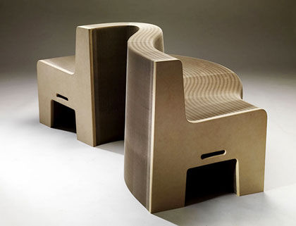 來(lái)自臺(tái)灣設(shè)計(jì)師邱啟審的實(shí)驗(yàn)性家具——FlexibleLove(可伸縮的情人椅),F(xiàn)lexibleLove使用一種手風(fēng)琴狀的蜂巢結(jié)構(gòu),以及各種可回收的材料制成的耐用家具,為了減少產(chǎn)品對(duì)環(huán)境的影響,F(xiàn)lexibleLove 16完全采用以工業(yè)用回收紙及碎木屑?jí)撼傻哪景鍨椴牧希⑹褂矛F(xiàn)有且成熟的制程來(lái)加工,同時(shí)拒絕對(duì)環(huán)境有害的添加物。