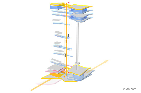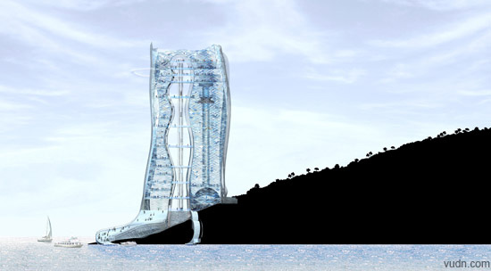 燈塔是米克設(shè)計工作室為巴西的里約熱內(nèi)盧市設(shè)計的一個方案。燈塔位于cotunduba島,緊靠著海邊的一個大碼頭。該塔設(shè)計了成進(jìn)出城市的拱門形,包括了觀測臺,報告廳,天橋,蹦極,攀爬塔,陀螺儀,餐廳,紀(jì)念品店,城市平臺,多功能空間等眾多功能。