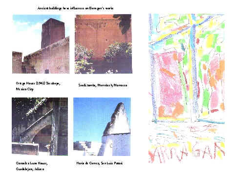1925年離開墨西哥到歐洲旅行,并且在旅行時(shí)參加了柯布的演講會(huì)?;啬鞲缰埃职菰L了希臘 _____ 此時(shí)他迷戀上了一般集居住宅的質(zhì)樸;到了西班牙,他找到他的理想 _____ 中古世紀(jì)西班牙首府格拉那達(dá)(Granada)附近摩爾族諸王的Alhmbra宮殿 , 圍墻內(nèi)有無拘無束不對(duì)稱陳列的建筑及清泉飛濺的寂靜花園 。