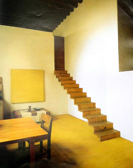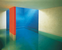 他的創(chuàng)作已被稱為極簡抽象派藝術(shù),但其用色及組成依然大膽奢侈。純平面,灰泥磚墻,木材甚至是水,都是他創(chuàng)作的元素。