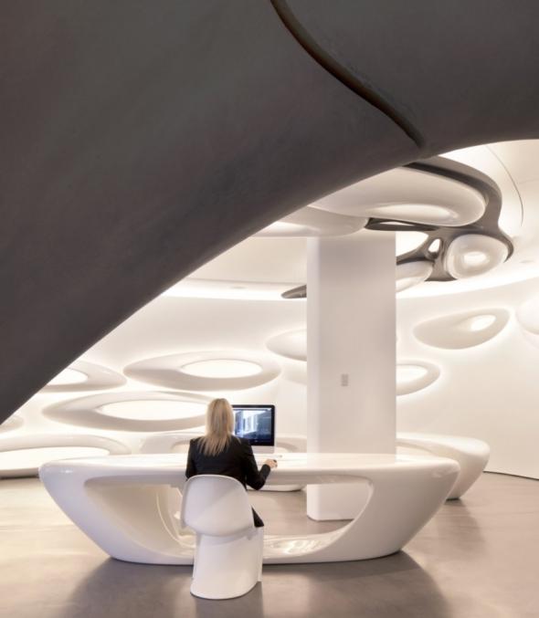 ZahaHadidArchitects完成了西班牙衛(wèi)浴品牌Roca在倫敦的一間展覽館。波浪起伏的白色墻壁環(huán)繞著接待室及休息室周圍,并貫穿整個Roca倫敦展覽館的室內(nèi)空間。這個展覽館位于切爾西港一座混合用途大樓的底層。