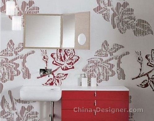 紅色系,熱情奔放、彰顯個(gè)性的撞色搭配充分體現(xiàn)了現(xiàn)代年輕人的品味,雙面盆設(shè)計(jì),早上起床不用跟親愛的搶著用啦!大膽的采用了時(shí)下最流行的韓式DIY墻貼站在超級(jí)大的花朵下是不是覺得原來(lái)只有幾平方的空間立刻大了幾倍?!