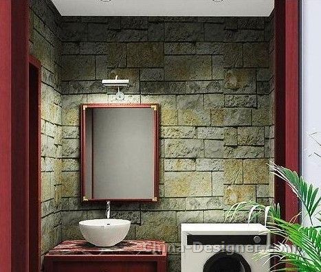 大理石紋的臺(tái)盆柜+古樸風(fēng)情的木框壁鏡配合石頭堆砌的墻面設(shè)計(jì),還有墻角的一絲綠意,讓人瞬間心平氣和,忘記了工作中所有的繁瑣雜物。