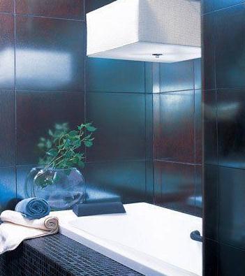 相對封閉的沐浴環(huán)境,應簡單流暢,不要選擇過于濃烈、繁復的顏色或圖案,使人產(chǎn)生焦躁情緒。