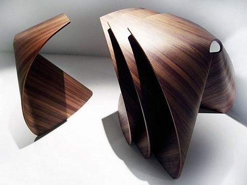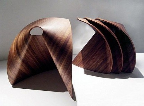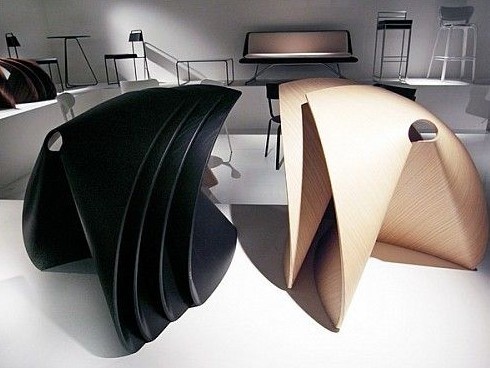 創(chuàng)意“AP”凳,外形奇特,造型新穎。設(shè)計師打破傳統(tǒng)設(shè)計風格,使用了mono-coque結(jié)構(gòu),用單獨的一塊膠合板制作而成。利用物理特性,凳子與地面有很大的接觸面,以減少壓力同時提高穩(wěn)定性。