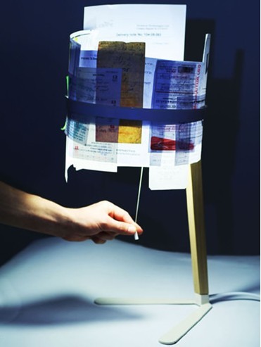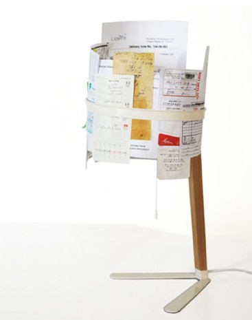 “文件燈”一個沒有燈罩的臺燈,上層部分的燈有兩個圓形的金屬圈,金屬圈之間的縫用來夾各種文件,如:收據(jù)、票據(jù)、賬單、便簽等等,順便這些文件可以當(dāng)作臺燈的燈罩,抬頭可見一目了然。設(shè)計(jì):gabycrohn。