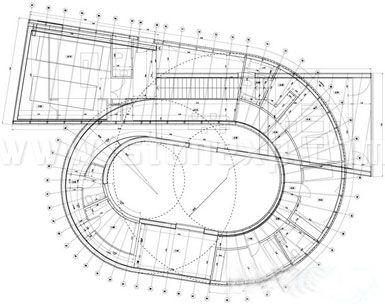 為了在一塊傾斜的地塊上建造有著各種社會(huì)關(guān)系網(wǎng)絡(luò)的房屋,還能看到馬德里城外山巒景觀,建筑師另辟蹊徑,考慮到了工程、道路交叉和改變方向等各種解決方案。從實(shí)用主義角度,建筑師采用通用方法解決地塊下傾的問(wèn)題,并盡量做到美觀。建筑外形采用循環(huán)運(yùn)動(dòng),通過(guò)兩條不同路徑能抵達(dá)房屋的所有位置,就像滑冰者、體操運(yùn)動(dòng)員所作的360度環(huán)形動(dòng)作。