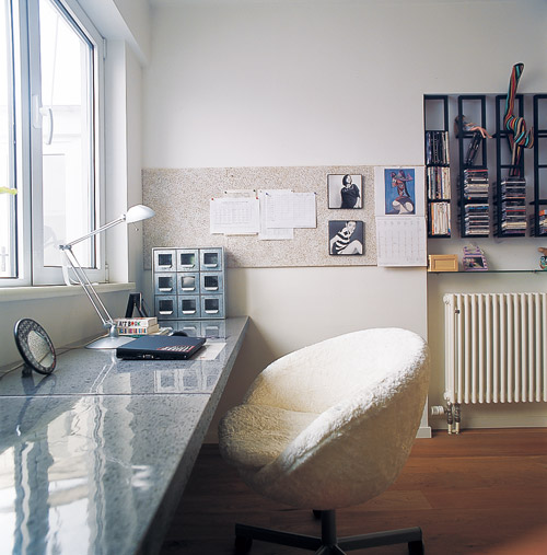 三樓女兒的書房,橫貫整個開間近四米的寫字臺結合功能性與美感,