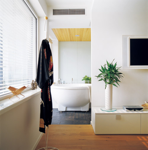 柯布西耶還說,建筑應帶來歡愉,而非最低限度的利用。在柯布西耶的建筑中存在一抹來自地中海的亮色,而非德國式的冷峻。在王泉寧靜的家里可以體會到幾許詩意,那是美麗生活升華后的光澤。二樓入口處的木墻壁上,掛著李勉麗大學時王泉給她拍的照片,清純恬靜而淡然。進入人生的穩(wěn)健期,這對夫婦的從容更加反映在家的每個角落,花卉、開放式浴缸、陽光下的躺椅……