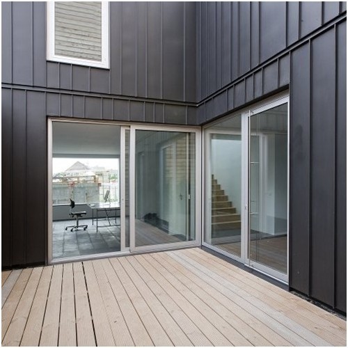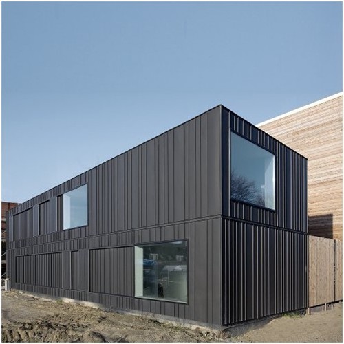 荷蘭因大學(xué)而聞名的萊頓市中心地帶一個(gè)曾經(jīng)的工業(yè)場(chǎng)地上,正在上演著荷蘭最大的私有集合住宅的城市開(kāi)發(fā)計(jì)劃。鹿特丹建筑師事務(wù)所Pasel.Kunzel在此設(shè)計(jì)出了又一個(gè)杰出的住宅項(xiàng)目。?V36K08/09是一個(gè)在公共停車場(chǎng),前端平臺(tái)上建造的住宅。該住宅由為母、子使用的相分離的兩部分住宅組成,包括了兩個(gè)溫馨、隱蔽的露臺(tái)。帶有細(xì)小焊縫的深色鋅板立面給整個(gè)建筑帶來(lái)了安靜且優(yōu)雅的整體效果。從室外看,住宅相當(dāng)?shù)镁o湊,好似城市肌理中的一個(gè)堡壘。只有當(dāng)你穿過(guò)厚重的木門(mén)進(jìn)入到建筑內(nèi)部,才能感覺(jué)到一個(gè)完全不同的內(nèi)部世界,好似一片幽靜的綠洲。在這個(gè)寬大且開(kāi)敞的起居空間里,內(nèi)外被彼此連接在一起。