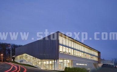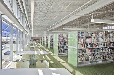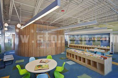 這座圖書館耗資1200萬美元,目標(biāo)是獲得LEED銀級認(rèn)證。它的底層是社區(qū)空間,通過樓梯往上走都是圖書館的空間。圖書館周邊大部分是住宅,因此它結(jié)合了很多可持續(xù)性的特征,例如種植植被的屋頂、太陽能和日光控制以及大量使用再生和可回收材料等。[page]