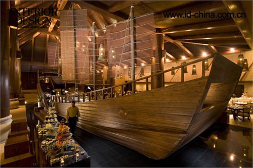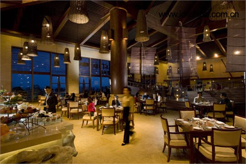 這座酒店的另一獨特之處就在于湖和四面環(huán)繞的山,以及這片土地的歷史和傳奇。落客門——門廊是進(jìn)入該酒店第一個接觸的地方,所以在那一定要有水景。因為顧客一踏入大堂,他們的視線就會穿過大堂吧看到遠(yuǎn)處的水和湖,或者至少能感覺到湖在哪然后沿著大堂走幾步就會進(jìn)入觀湖的最佳點。主創(chuàng)團(tuán)隊建議主酒吧的露臺和湖泊之間的設(shè)計應(yīng)該避免任何形式的欄桿。實現(xiàn)這一目標(biāo)的方法之一是在酒吧臺階平行處設(shè)置一處水景以避免顧客落入3米處的水域。水景使水更接近酒廊,融入到提供遮蔭,夏天陽臺裝飾樹以及木樹之中。常規(guī)的使用有限的材料托盤是很容易整合內(nèi)部與外部的空間的。主酒吧是需要打開至與一般的門檻相似的位置,延至臺階。門應(yīng)該是雙向折疊,而且能夠百分之百的打開。毛石墻可以在外部使用也可以在內(nèi)部使用,如果可能的話,應(yīng)該出到門廊和陽臺。 因此,酒店外融于山水、內(nèi)化于江南。酒店大堂,梁柱斗榫合縫,色彩耀目的大斜屋頂,與原木共同散發(fā)的溫暖色調(diào)鐫印于心,一栱一木均體現(xiàn)江南風(fēng)采。與實體1:1全真比例的雙帆木船,更使酒店獨具江南古風(fēng)雅韻。舒張中有含蓄,寫意中現(xiàn)細(xì)節(jié)。向湖面挑伸甚遠(yuǎn)的屋頂,淡化了無錫靈山元一希爾頓逸林酒店主體建筑豎向的體量,更加融于自然,同時也構(gòu)建出寶貴的蔭翳之地,在炎炎夏日中也為旅客爭得賞湖觀山的戶外空間,享受與自然接觸的旅居生活。 “亞洲酒店在細(xì)節(jié)和服務(wù)上早已得到業(yè)界認(rèn)可,而太湖在中國有著‘魚米之鄉(xiāng)’的千年美名。將這千年歷史韻味與關(guān)愛相結(jié)合就成了我們酒店服務(wù)培訓(xùn)的首要課題。”希爾頓逸林品牌高級副總裁Rob Palleshi先生如是表示。“我們希望,每一位從無錫靈山元一希爾頓逸林酒店離開的客人,在品味他們的旅行回憶時,都能將我們結(jié)合了希爾頓逸林品牌與太湖江南特色的這份獨特關(guān)愛與其他美好回憶區(qū)別開來。”