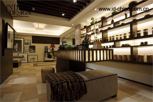 所謂禪茶一家,愛禪宗之人,必定對品茶相當講究。地下室就為女主人這一愛好提供了施展之地。滿墻的實木置物架,整整齊齊的陳列著各式茶具以及原材料,色彩各異形態(tài)各異,卻因它們共同的功能而統(tǒng)一相聚在這,仿佛女主人在向來客敘述著茶藝文化:什么茶都能喝,什么事都可以面對,人便可以在這樣繁復的社會找到屬于自己的自由,來客便可以在這樣的茶室這樣的空間找到屬于自己的寧靜。傍邊的影音區(qū)最別致的地方莫過于兩把紅色的單人椅。在整個色彩素凈典雅的空間,何其鮮亮何其艷麗,一如蓬勃發(fā)展的中國經(jīng)濟又象征著熱情好客的東南亞人民。