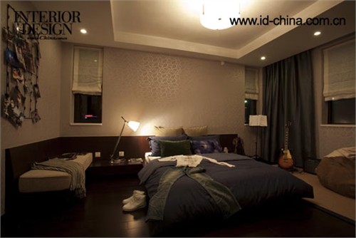 男女主人的臥室在書房旁邊也受到書籍的熏陶。床后大面積的木條墻面,與客廳的隔斷相輔相成,遙相呼應。雖是細小的木條,卻因設計師大膽的大塊面使用彰顯出主臥的大氣。依然是不銹鋼飾品作為房間亮點,小面積的點綴,毫無重復之嫌,反而體現(xiàn)出設計師深厚的搭配功力。綠色植物裝飾比其他任何飾品更具有生機和活力,畫中的樹枝小鳥與真正的植物搭配在此,或虛或?qū)崳蜢o或動,不但豐富了空間,還給人們帶來全新的視覺感受,空靈脫俗,直達心靈的意韻。