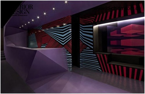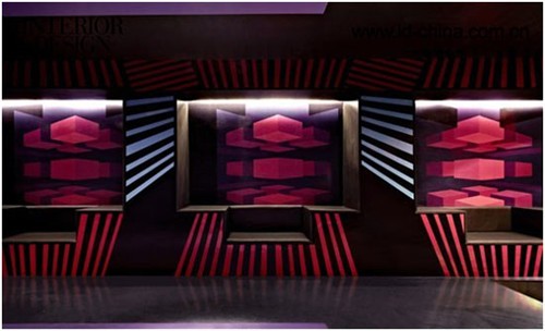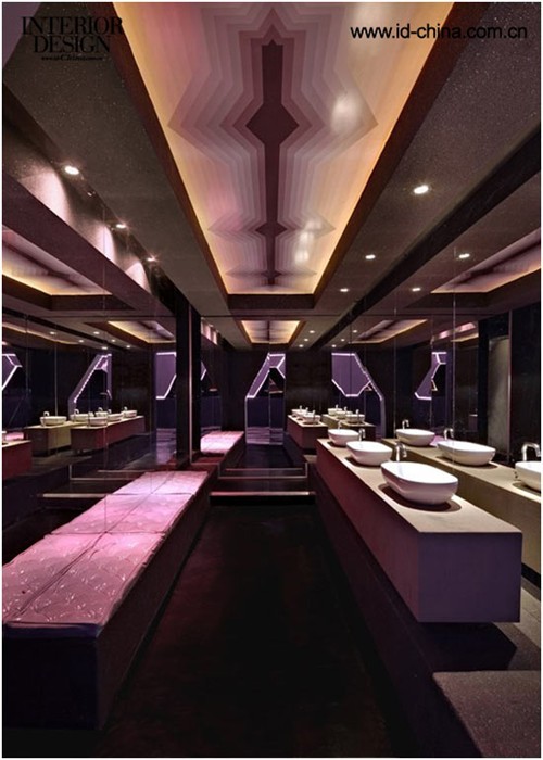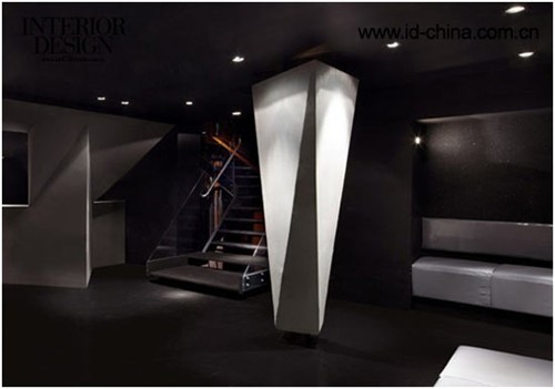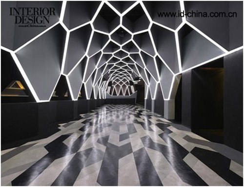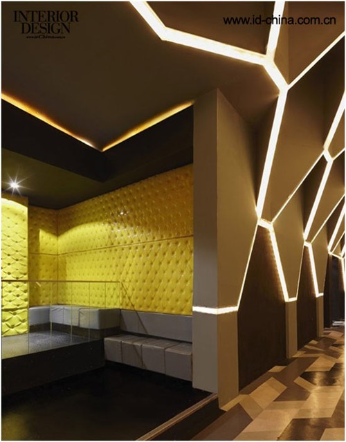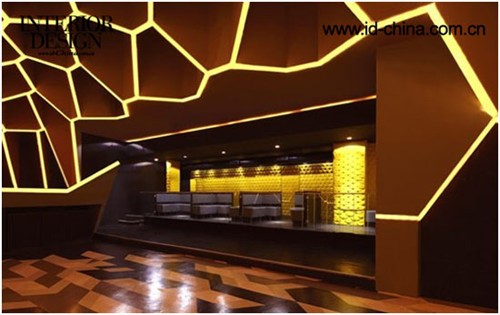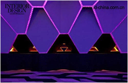 基于直線線條的雕塑感外形突破了常理的設計,在這里設計師摒棄了傳統常用的90°角。外部設計的主要線條選擇了大小不一的六邊形,這種獨特的外立面是設計師的新研發(fā)產物。利用棱鏡原理,支柱由不同的三角形連接成一個整體造型,介入了方形與寶石界面等結構,使得設計融入了更多的建筑造型,憑借這些線條制作的舞池能夠更加帶動人的感知能力。不對稱的造型出現在室內的每個角落。