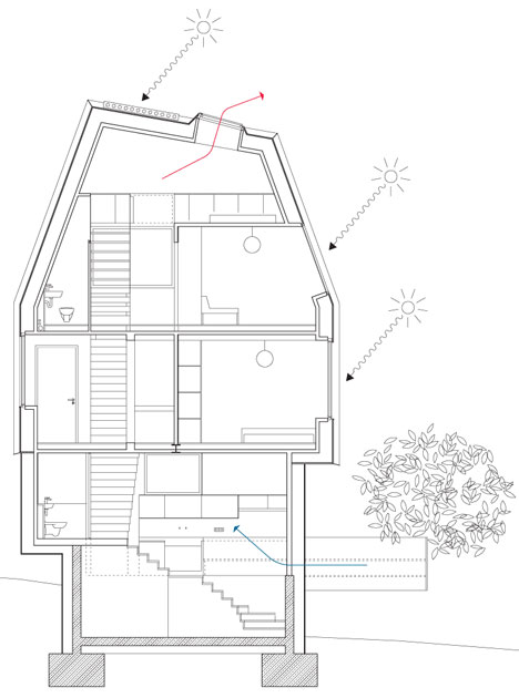 文字:張森 圖片:Björn Martenson 審核:馬海金 蒂賓根一處生活空間,在這里住著父母與他們的四個孩子。 場地和委托 項目坐落于蒂賓根,建筑面積有365平方米,南向一面的斜坡能夠看到蒂賓根全城的景致以及城內(nèi)的古城堡。在上個世紀(jì)六十年代,該地區(qū)對于房屋建造有著極為嚴(yán)格的發(fā)展計劃規(guī)定,在聯(lián)邦建筑規(guī)范34條中明確地表示:“個人在建造房屋的時候要考慮到周邊的景觀”。事務(wù)所在接受委托時,對于要設(shè)計這樣一個需要供六口人居住的空間多少也會有些才華施展不開,被動地以有效提高能源利用率為該住宅項目的主要技術(shù),并在建設(shè)時向有關(guān)部門申請使用天然材料,審批后更是謹(jǐn)慎地使用手頭的資源,以便使得建筑看上去更加可持續(xù)。不過在設(shè)計后,房屋很好地滿足了一家人的居住需求,委托人表示十分滿意。
