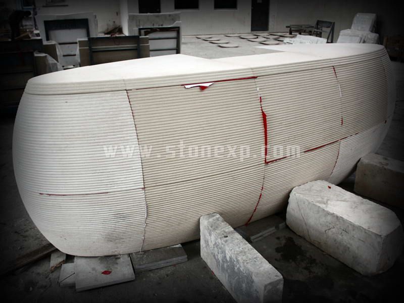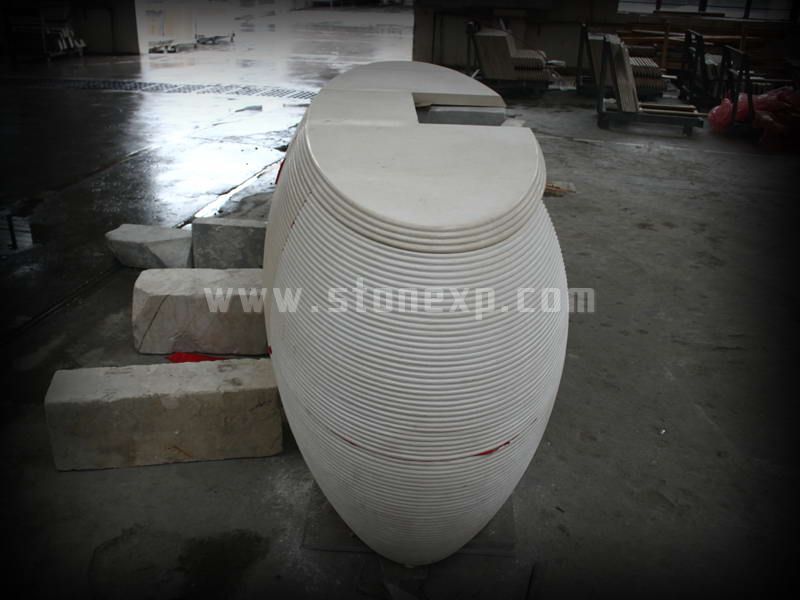 該天然石材的特色造型由加工中心制作而成,弧線的拉絲面加工精細(xì)要求高,難度大,立體的造型具有藝術(shù)美感。該產(chǎn)品主要石材品種為皇家砂石。