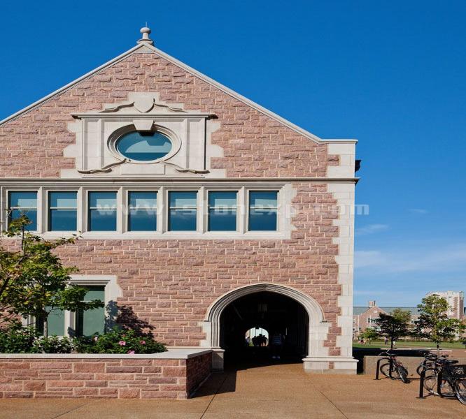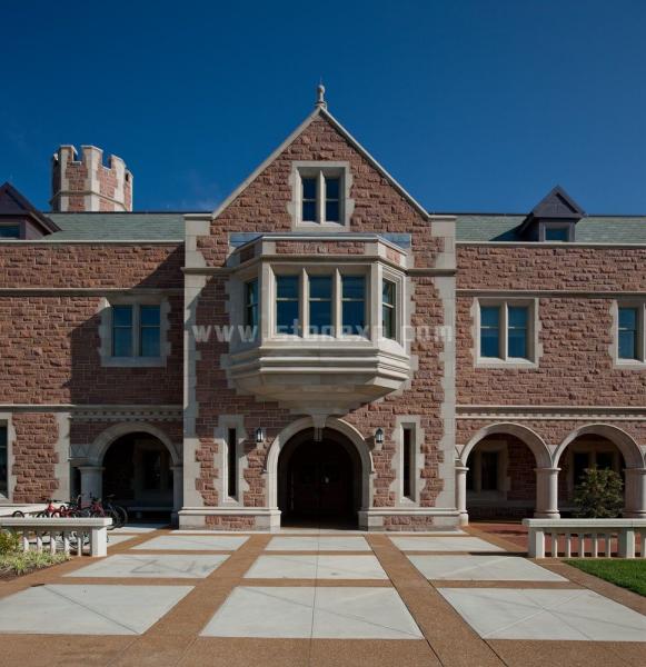 該石材設(shè)計工程主要使用了Rustic Buff這一石材,整個工程共耗費石材14,893平方米。該工程由于設(shè)計精心,工藝精湛,曾獲“LEED 認(rèn)證金獎”建筑大獎。該建筑設(shè)計別致,外觀古典美觀,典雅大方,吸引著每個來訪者。