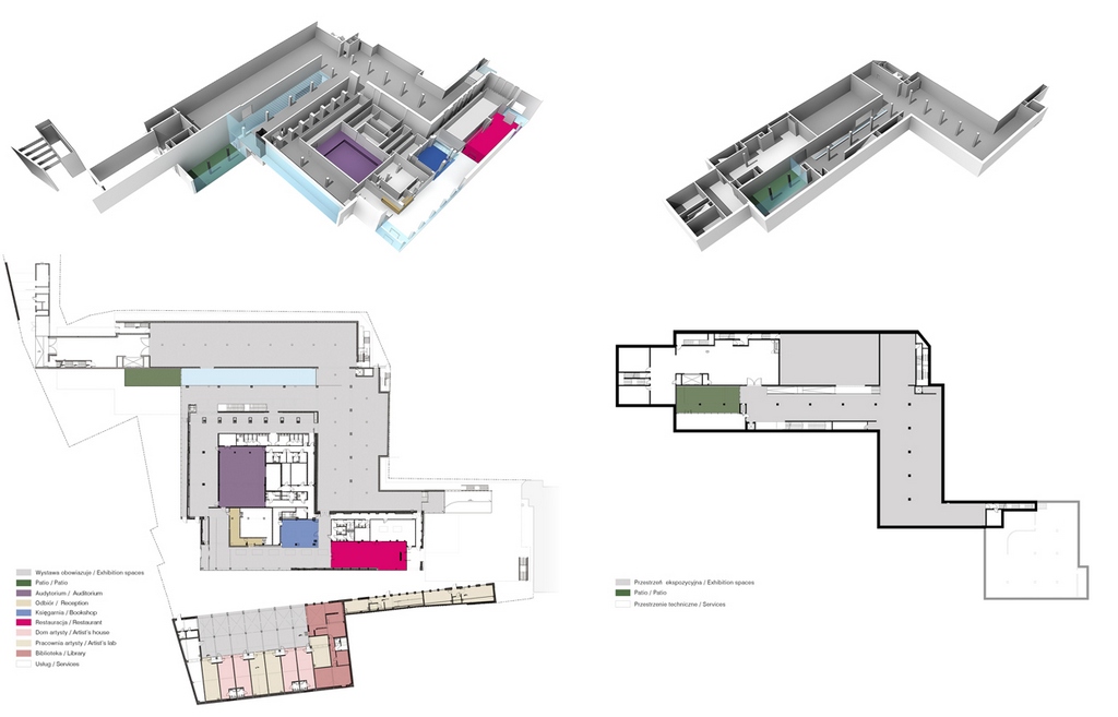 首席設(shè)計(jì)師:Claudio Nardi 設(shè)計(jì)團(tuán)隊(duì):Claudio Nardi con Leonardo Maria Proli 業(yè)主:Ghina Miejska Krakow, Zarzad Buoynkow Komunalnych, Municipality of Krakow 施工:WARBUD SA 項(xiàng)目地點(diǎn):克拉科夫,波蘭 建成時(shí)間:2010年 建筑面積:9000平方米 造價(jià):20,000歐元 原建筑工業(yè)風(fēng)格的屋頂線條成為整個(gè)項(xiàng)目的視覺元素設(shè)計(jì),是新舊建筑的連續(xù)點(diǎn)。展覽區(qū)建造在原有的建筑結(jié)構(gòu)之中,展區(qū)從入口一直延伸到后部的花園廣場(chǎng)。南墻是印有博物館標(biāo)識(shí)的地方,是入口所在地。在街上看,新博物館就像是一座新類型的建筑,展現(xiàn)了現(xiàn)代技術(shù)、輕質(zhì)量和光亮等特征。 |
