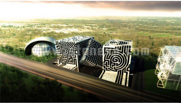 在我們由十二個(gè)方案中精煉出來的三個(gè)主打方案中,其中一個(gè)以最大展覽面積為主,保守但是經(jīng)典來著手研究設(shè)計(jì),利用方塊代表城市,而中間的玻璃幕墻上的線條就是鐵路的調(diào)配中心,因?yàn)橹挥性诔鞘兄g,運(yùn)輸流量大的地方,才會(huì)有鐵路調(diào)配中心,它是許多鐵路線路的交匯點(diǎn)。但是城市要如何體現(xiàn)呢?我們構(gòu)思許久,最后因?yàn)檎褂[廳限高20米,因此在比例上,20×20×20 是一個(gè)非常漂亮的幾何體,可以代表城市。至于外墻材料與顏色,我心中浮現(xiàn)出了在鐵路上筑路的工人,他們無畏日曬,揮灑汗水,鋪設(shè)鐵軌,辛苦地搭建鐵路,淚水與雨水,從古銅色的皮膚上流下,汗水掉到鐵軌上,讓鐵軌也染上了銅斑。中國的鐵路發(fā)展歷史,從清末的詹天佑到今天以時(shí)速超過350公里,世界上最快的動(dòng)車組。經(jīng)過了百年歷史,但他們的生命猶如青銅,將永久留在中國大地上。中國的鐵道建設(shè),有如銅一般的耐久堅(jiān)強(qiáng)。而城市是一個(gè)體塊,是一個(gè)生活的空間,古時(shí)候的城池,建設(shè)的有如銅墻鐵壁一般,才能成為金湯固池,不會(huì)被攻破。此外,城市是有生命的,必須善待它,否則它會(huì)生病。同時(shí),城市隨著歲月流逝會(huì)煥發(fā)獨(dú)特的氣質(zhì)與風(fēng)韻。因此,我從開始就希望外墻板擁有生命力,但是銅的造價(jià)高昂,所以我告訴業(yè)主,如果不能采用真銅,那么采用銅版或者是銅色鋁板也可以。考量到比例,我們?cè)阢~版的兩側(cè)各設(shè)有一道玻璃墻,一方面內(nèi)部采光,另一方面,這兩條玻璃墻代表著中國兩大河流,黃河與長江,他們?cè)杏搜睾觾膳缘拇笮〕鞘小?/p>