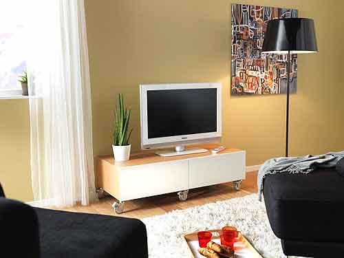 少用大型的酒柜、電視柜等,以使空間的分割單純化。如果大型家具十分需要,則往角落放置為好。特別是沙發(fā)的選用要謹慎,稍不留神就會占去半個客廳。
