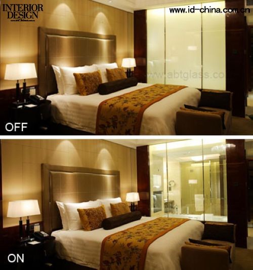 調(diào)光玻璃(浴智屏)作為星級酒店客房隔斷,客房不再狹窄壓抑。透明狀態(tài)寬敞明亮;霧化狀態(tài)享受私密。