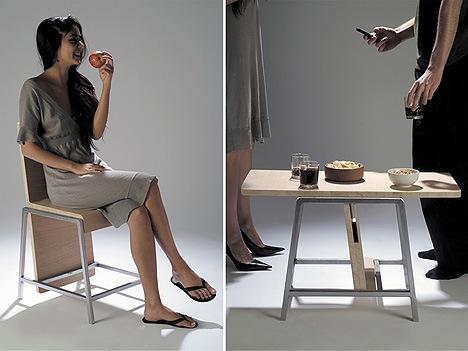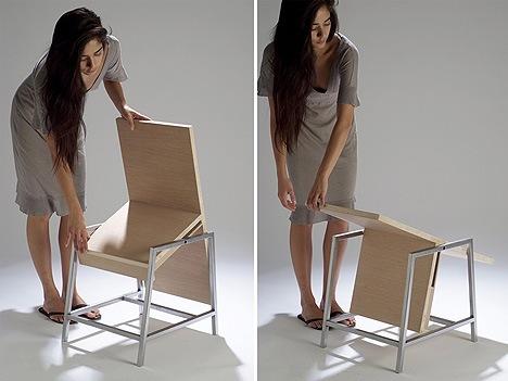 一把椅子或者一張矮桌,翻轉(zhuǎn)之間即可輕松切換,簡單而實(shí)用的設(shè)計(jì),很適合空間有限的緊湊戶型。法國設(shè)計(jì)師Assa Logerot作品。