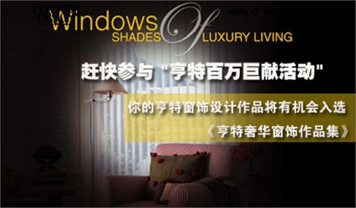 ldquo; 亨特窗飾百萬巨獻”網(wǎng)絡免費抽獎活動專門為國內(nèi)的室內(nèi)設計師和軟裝設計師度身量做,旨在回饋眾多關(guān)注和喜愛亨特窗飾產(chǎn)品的設計師,以及讓更多沒有接觸過亨特窗飾的設計師有機會深入了解以及親身體驗兼美觀時尚與強大功能于一身的亨特窗飾比傳統(tǒng)布藝簾在家居設計中更具優(yōu)越性的魅力。