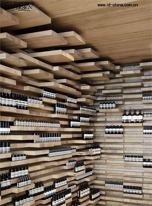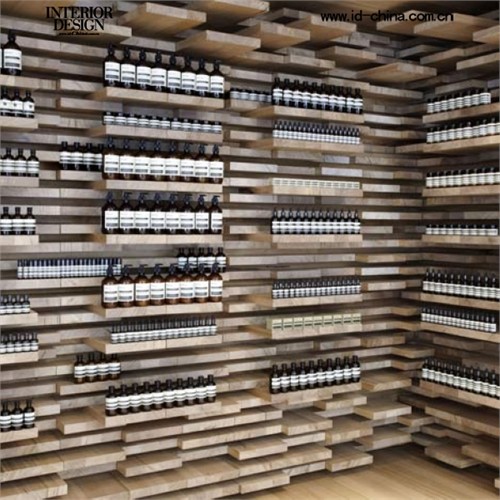 墨爾本March設(shè)計(jì)事務(wù)所再次為伊索品牌設(shè)計(jì)了巴黎的店面裝修。這次從墻體、地面到天花共采用了3500塊木板,把伊索品牌帶歸到18世紀(jì)風(fēng)格建筑內(nèi)。伊索的護(hù)膚產(chǎn)品擺放在從墻體凸出來的木板上,而這些灰色的木材都來自維多利亞、澳大利亞的森林,在墨爾本郊區(qū)進(jìn)行切割后標(biāo)簽,然后海運(yùn)到巴黎進(jìn)行組裝。