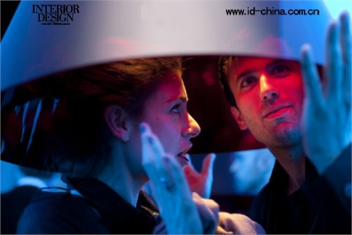 受優(yōu)質(zhì)光感與寶馬6系的驅(qū)使,BMW首次采用了全LED頭燈,Paul Cocksedge在FLOS展區(qū)內(nèi)豎起一面合理的、曲線流暢的白“墻”,低懸吊掛著紅白的錐形燈飾。由于內(nèi)設(shè)寶馬的頭燈,隱藏式光源很難被發(fā)現(xiàn),透過塑料燈身隱約透出閃爍的光線,此時(shí)光源顯現(xiàn),而且變化著光質(zhì)。