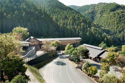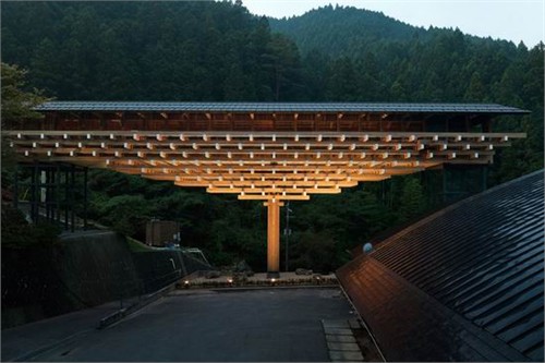 由日本隈研吾建筑事務(wù)所(kengo kuma and aociates)設(shè)計(jì)的“梼?cè)緲虿┪镳^”(yusuhara wooden bridge museum)位于日本高知縣。這個(gè)方案將日本傳統(tǒng)美學(xué)與當(dāng)代建筑語(yǔ)匯相結(jié)合,力求讓建筑與周邊自然景觀和諧共處。