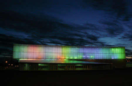 這座建筑包括劇場(chǎng)、音樂堂和體育設(shè)施,有著可伸縮的座椅和可拆卸的舞臺(tái)。表演期間,主空間可容納的人數(shù)為4500人。