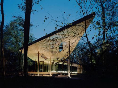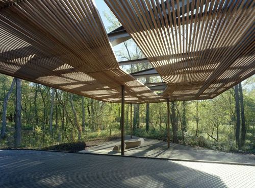 Marlon Blackwell建筑事務(wù)所在位于美國印第安納波利斯藝術(shù)博物館的100英畝的藝術(shù)與自然公園中心建造了Ruth Lily游客觀光亭。