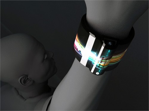 設(shè)計師Hiromi Kiriki為索尼設(shè)計的下一代腕戴式電腦采用腕戴式可投影鍵盤,平時可以握成環(huán)狀手表戴在手腕上,通過類似屏保這樣程序?qū)⒅兂梢粋€活動的裝飾手表。而一旦需要,又可以展開變成一臺平板電腦。另外,當(dāng)它處于平板電腦模式時,還可以通過內(nèi)嵌的鍵盤和觸摸屏兩種方式進(jìn)行輸入,而畫面的輸出,即可以通過顯示屏進(jìn)行顯示,也可以通過內(nèi)置的投影儀進(jìn)行大屏幕的展示。