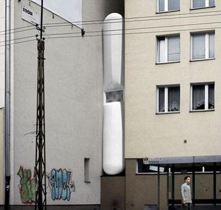 Szczey告訴記者,他看到這個(gè)空隙后覺(jué)得應(yīng)該將它填滿,于是設(shè)計(jì)了這座住房。它跨越了4層樓,有一間臥室、一間廚房、一間衛(wèi)生間和一間客廳。樓層上下用一架梯子來(lái)連接,因?yàn)闆](méi)有空間再修建樓梯了。每一層跨度為40英尺,盡量利用兩座建筑之間所有的空間。