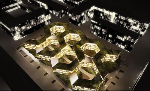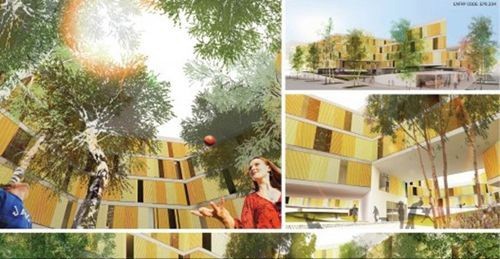 它應(yīng)該是這樣一種尺度:當(dāng)孩子們在庭院中玩耍時,房屋中的父母能聽見孩子們的笑聲;當(dāng)孩子們抬頭仰望時,他們能看清窗口中父母的臉孔。因此設(shè)計師認為建筑的層數(shù)以兩至三層為宜,最多不超過四層。這樣的建筑高度將允許樹冠從屋頂伸展開去,吸引鳥兒盤旋歌唱,居民也能更接近自然。