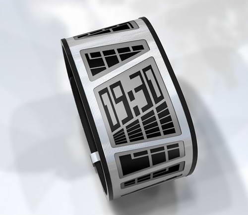 日本鐘表公司Tokyoflash推出的電子時(shí)鐘手表,這種手表看起來就像是一個(gè)不銹鋼的手鐲。