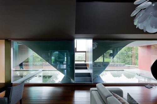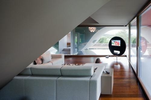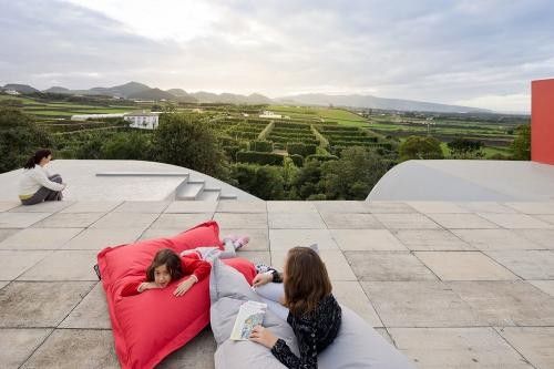 這座住宅位于葡萄牙亞述爾群島圣邁克爾島的北側(cè)。由于這里的微氣候是常年刮風(fēng)多雨,因此最初的設(shè)計(jì)策略是利用墻體遮風(fēng),設(shè)置不同的天井和帶頂?shù)耐ピ簱跤?。這些天井和庭院也令所有的起居空間都能通過內(nèi)凹的玻璃墻體朝向自然的綠色開放。