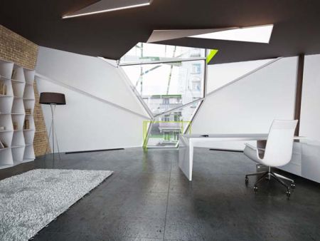 這間占地230平方米的辦公室共有3層,它懸于兩棟樓的過道之上,從底部延伸出來的樓梯上下樓。這間辦公室外部造型奇特,內(nèi)部則簡潔大方,兼有辦公區(qū)和休閑區(qū)。它屬于一家建筑設(shè)計(jì)事務(wù)所所有,其特別的設(shè)計(jì)仿佛在為這家事務(wù)所做宣傳。
