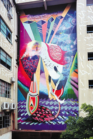 OCT—LOFT華僑城創(chuàng)意文化園近日開(kāi)始邀請(qǐng)一批國(guó)際和國(guó)內(nèi)知名壁畫(huà)家,在園區(qū)多個(gè)建筑的外立面現(xiàn)場(chǎng)創(chuàng)作8幅壁畫(huà)。7位各國(guó)藝術(shù)家目前已經(jīng)完成了兩幅作品,還有兩幅即將完成,4幅正在創(chuàng)作。他們的創(chuàng)意將為城市的公共藝術(shù)空間帶來(lái)別樣的韻味。深圳藝術(shù)家滕斐說(shuō),這是一種不一樣的東西,意味著藝術(shù)的豐富性,而城市需要這些不一樣的空間,需要藝術(shù)與人之間的直接交流。