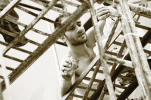 就在URBANUS都市實(shí)踐所在的E—6棟外墻上,一幅充滿(mǎn)神話(huà)色彩的作品已基本完成。雅典壁畫(huà)藝術(shù)家Woozy連續(xù)幾天從早上六點(diǎn)就開(kāi)始創(chuàng)作,記者遇到他時(shí)他已是汗流滿(mǎn)面。他告訴記者,自己創(chuàng)作的是一位希臘戲劇家最原始舞臺(tái)劇中的一幕,天上的鳥(niǎo)和水里的魚(yú)對(duì)話(huà)的場(chǎng)景。