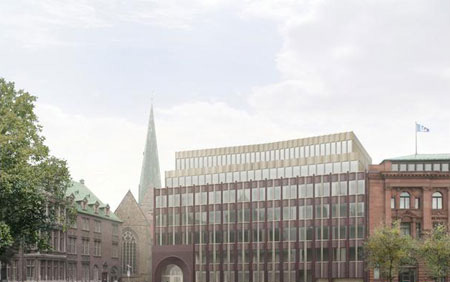 Caruso St John事務(wù)所在德國不萊梅的歷史城區(qū)設(shè)計(jì)了一個耗資3300萬歐元、面積為2.33萬平方米的工程,靠近市政廳和大教堂,使得Domshof中央廣場的西北角變得更完整。