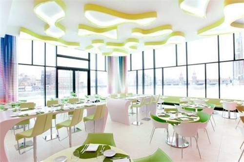 卡里姆ull;拉希德(Karim Rashid)設(shè)計(jì)的NHow柏林酒店號稱歐洲第一大酒店,該酒店內(nèi)有一間一流的錄音工作室、客房服務(wù)菜單上包括吉他借用服務(wù)、而超現(xiàn)實(shí)主義的室內(nèi)裝飾和奇特大膽的建筑外觀成為深夜即興演奏和即興DJ表演完美催化劑。而啟發(fā)Nhow柏林這種音樂創(chuàng)意的正是它的音樂之聲地板。