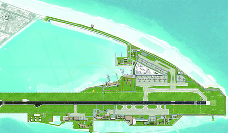 機(jī)場(chǎng)的維護(hù)和安裝也做到簡(jiǎn)便可行,盡量減少對(duì)環(huán)境的影響。雖然布局上受到場(chǎng)地條件的局限,但是仍然優(yōu)化了所有的功能服務(wù)區(qū),不至于延伸到珊瑚礁上。