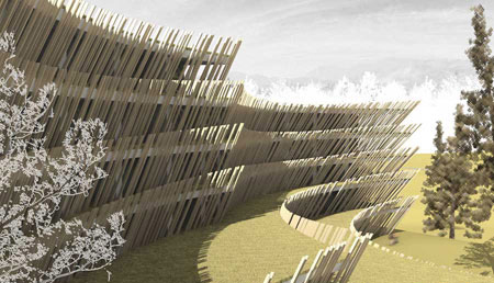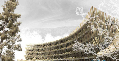 建筑本身采用了天然的材料,并隨著時間的流逝來慢慢顯示出歲月的痕跡。木質立面構成了樹林與飯店的直接對話,垂直的木板遮擋了來自外面的視線,也成為保護內(nèi)部空間,防止熱量流失的一道屏障。