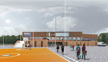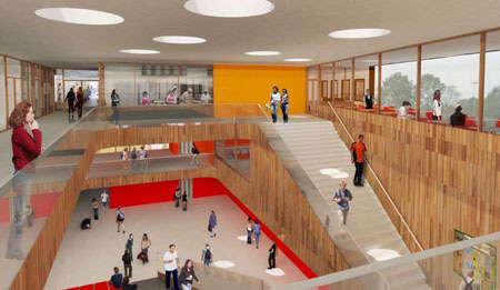 學(xué)校建筑既受人歡迎又讓人振奮,開放式的立面上采用了大量的玻璃和花狀的木質(zhì)板條。而且,它也將達到BREEAM"很好"的可持續(xù)性評分標準。其采用的設(shè)計元素包括地下儲熱系統(tǒng)、可持續(xù)性材料的運用、通過沼生植物凈化水源以及高度靈活和舒適的室內(nèi)空間等
