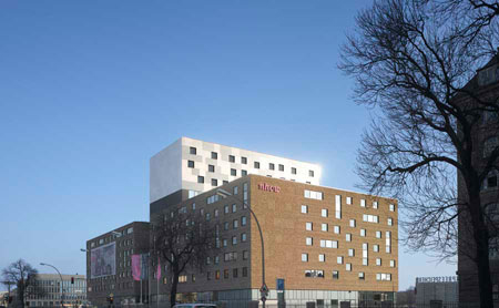 由西班牙nh集團(tuán)設(shè)計的四星級酒店"how Berliquot;建筑面積2.2萬平方米,南邊是ree河,北邊是Stralauer Allee,有310間客房和兩座餐館以及會議中心、舞廳、洗浴中心和地下停車場等。