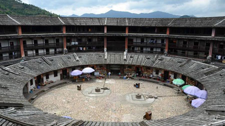 該地區(qū)以出產(chǎn)玉石和茶葉聞名,有大片竹林和古老的"土樓"。這種圓形的房屋最多能夠容納一個宗族的600人居住。