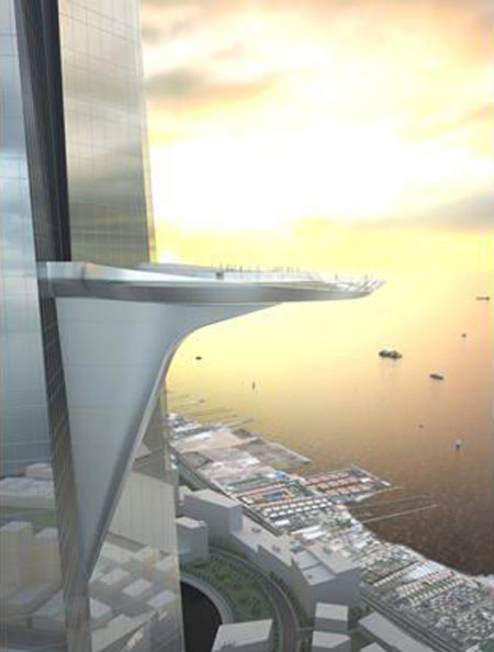 這座被稱作"一英里高的大廈"其高度將超過1000米,至少比現(xiàn)在的世界第一高樓迪拜的哈里發(fā)塔高173米。預(yù)計電梯需要12分鐘的時間到達頂層。